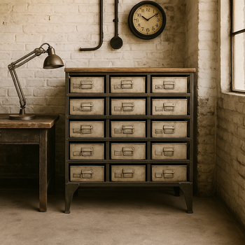 ตู้ลิ้นชักโลหะอุตสาหกรรม | ลิ้นชักโบราณ | เฟอร์นิเจอร์สำนักงานแบบชนบท
