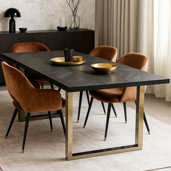 2023新デザインモダン天然ヘリンボーンダイニングテーブルセットソリッドウッド長方形スチール脚家庭用屋外レストラン用